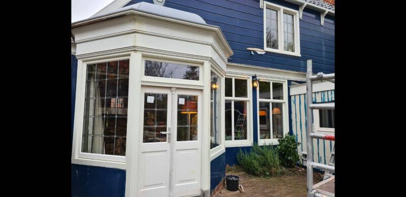 DRS Projecten is gestart met het plaatsen van nieuwe kozijnen en deuren voor rijksmonument in Broek in Waterland. 20-11-2021 gestart met de beglazing.
